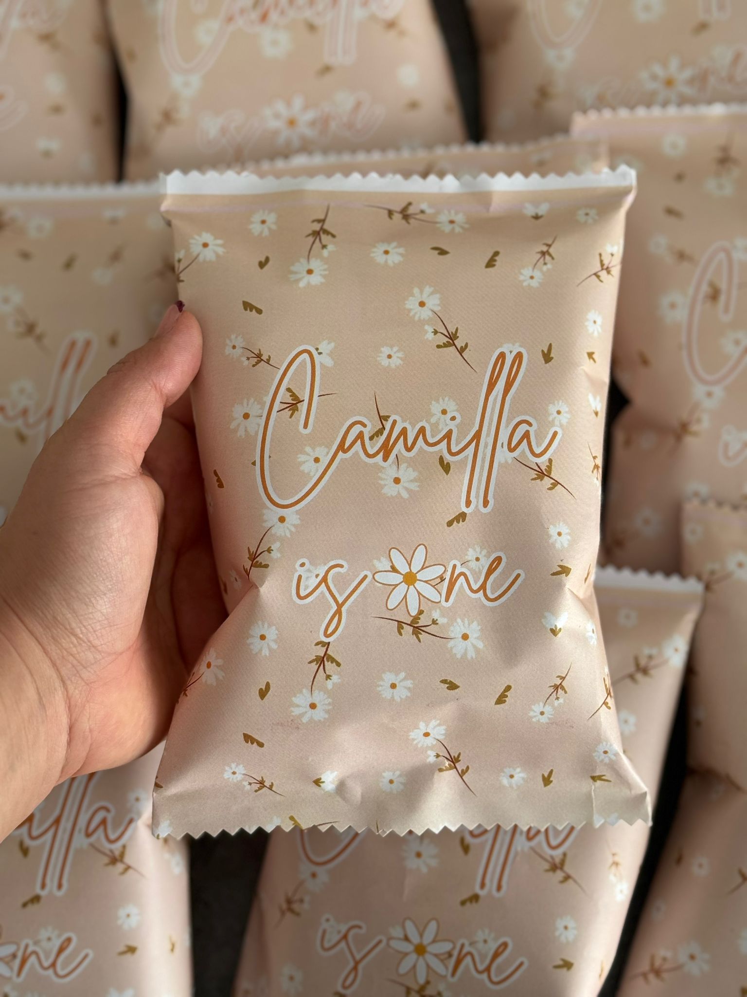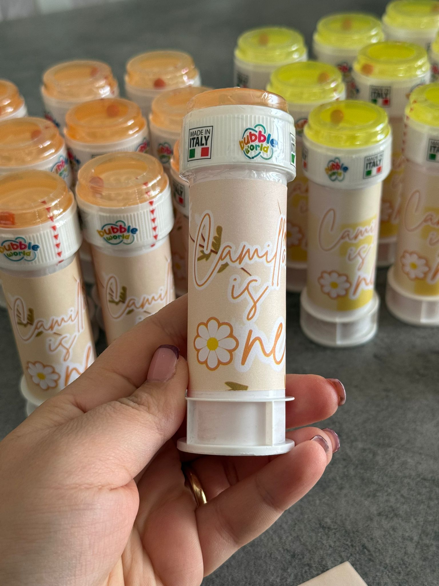 Kit Margherita include una busta di patatine e una bolla di sapone a tema margherite 3,30€